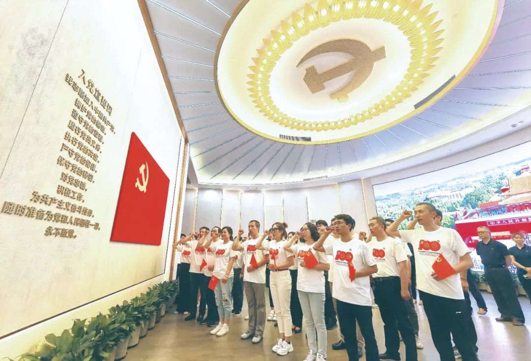 走得再遠,也不能忘記來時的路。圖為黨員在中共一大紀念館重溫入黨誓詞。圖片來源:視覺中國