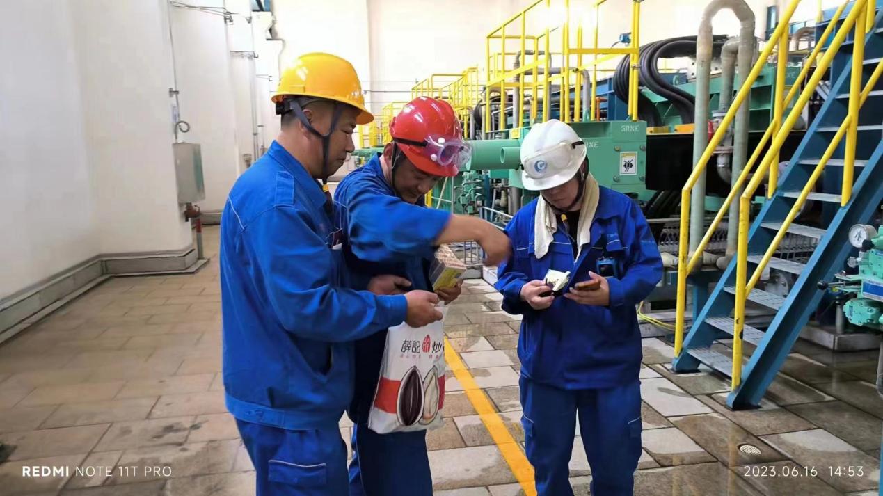 氯堿中心黨委以建設“有溫度”的黨組織為宗旨,切實提升為民服務的水平。氯堿中心黨委深入一線,為職工發放藿香正氣水、冰棒、飲料、礦泉水等防暑用品,每天為外操間發放防暑綠豆湯,為高溫外出作業人員配備了急救藥品,積極做好后勤保障工作。根據夏季高溫天氣狀況,合理安排職工作息時間,盡量避開高溫時段戶外作業。以人為本,多管齊下,班子成員深入基層與職工進行溝通交流,了解職工需求,把中心的關心關懷送到每名職工心里,配備血壓計,隨時關注職工身體情況。把防范高溫、潮濕、多雨等自然災害引發的各類事故作為首要任務來抓,組織人員進行季節性排查,全力杜絕高溫、多雨期間發生事故。
