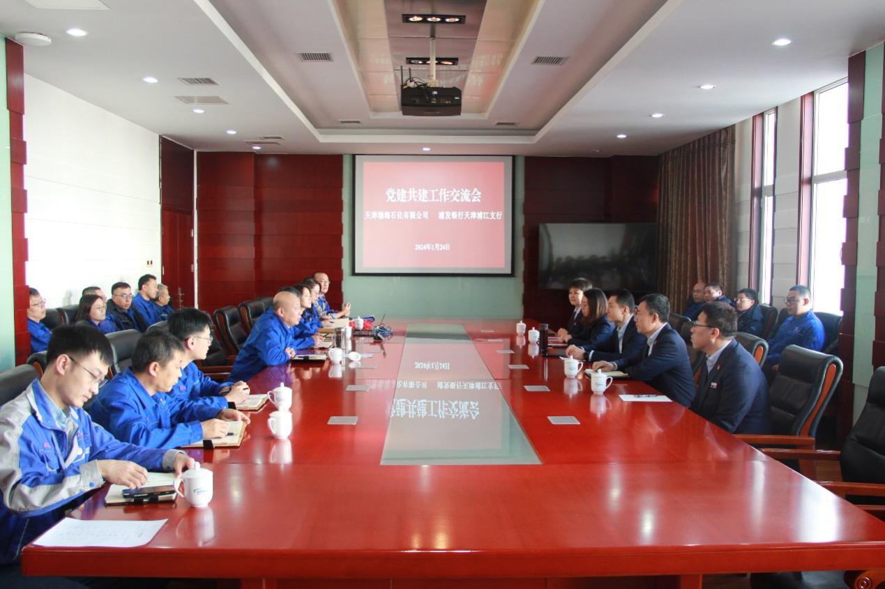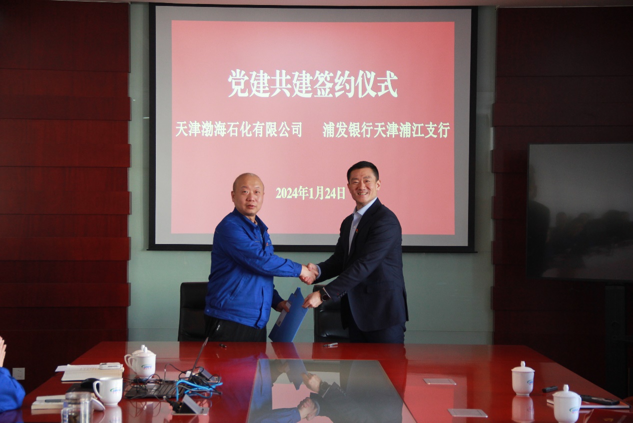 1月24日下午,天津渤海石化有限公司與浦發銀行天津浦江支行開展了黨建共建工作交流活動。渤海石化黨委書記、董事長郭子敬,黨委副書記、工會主席李建義,總會計師李薇,浦江支行黨支部書記、行長趙博,副行長于金普及雙方黨員代表參加了此次活動。