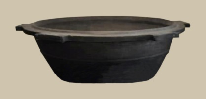 圖片:1、帶有“大富牢賏”文字的陶片,2、“牢盆”復原圖