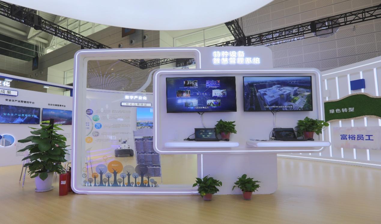 本次會上,渤化集團以“聚力智能科技,勇創未來發展”為主題搭建展區,展臺中心的智慧科技樹以化工新材料、數字智能、綠色發展等戰略方向為根基,延伸覆蓋集團產業版圖,通過產業數字化、數字產業化、新材料產業、綠色環保產業、新能源產業、智慧教育產業、C端產品、創新創業八個版塊精準分區,從內容端、空間端、體驗端、品牌端、文化端全面展現數字賦能化工制造業高端化智能化綠色化發展的支撐作用和建設成效,重點突出“三大亮點”。