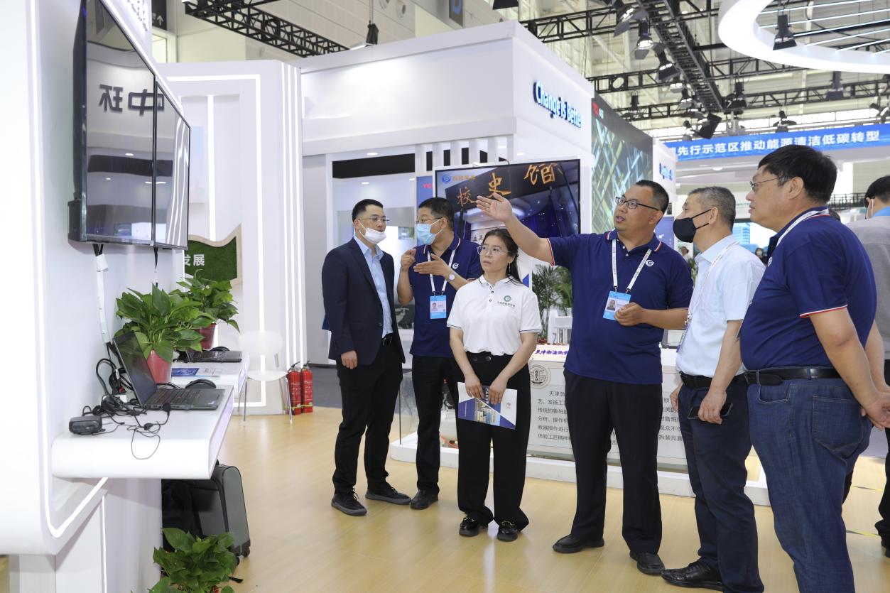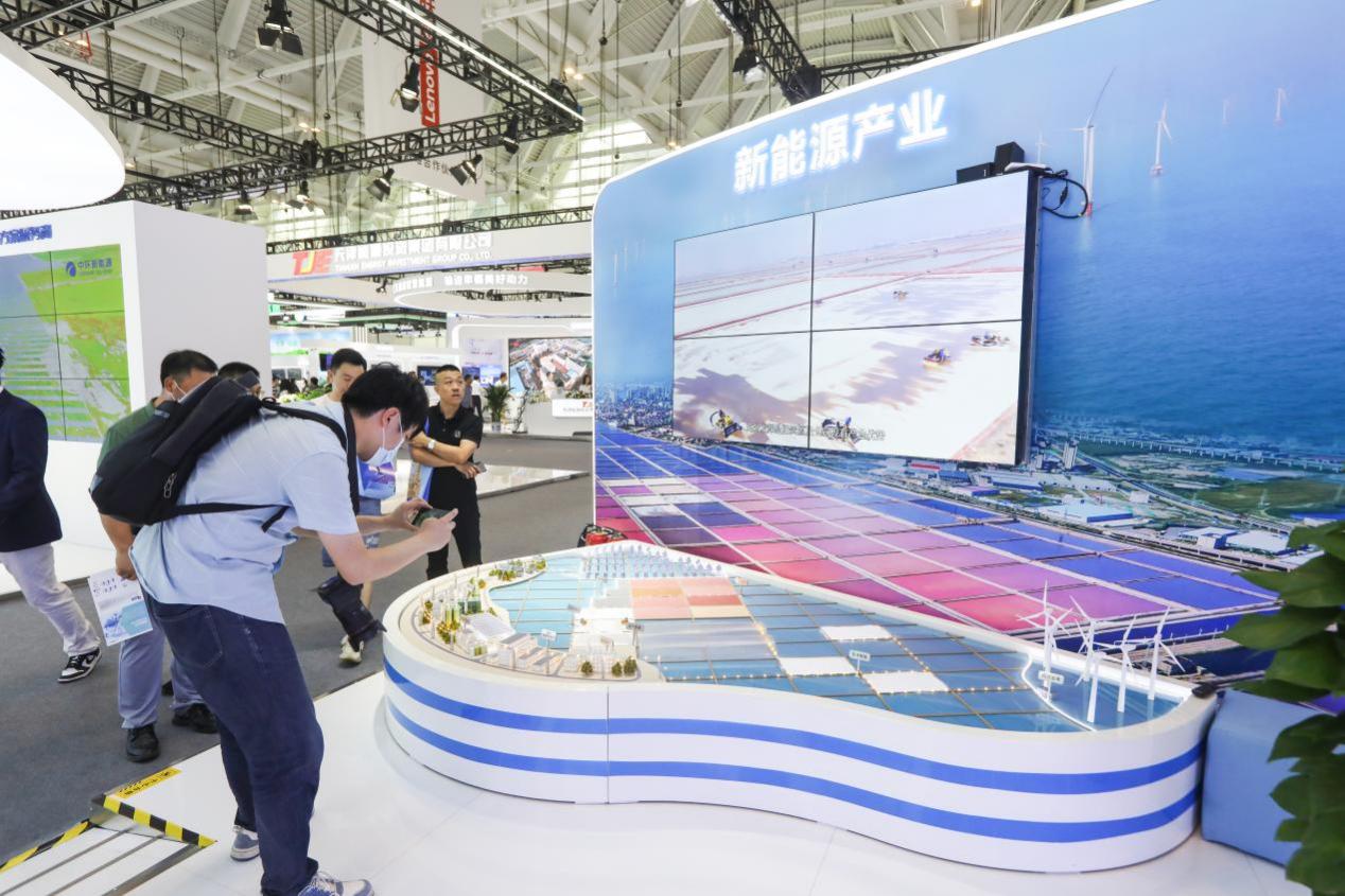 新能源產業展區通過沙盤的形式,完整地展現了綠色能源與優勢資源結合發展的建設成效。國能集團低碳研究院、東西部協作產業聯盟、光伏組件生產企業TCL中環及儲能技術供應商度普新能源與海晶集團進行了對接交流,為推動集團新能源產業發展創造了新機遇。漢沽鹽場新能源“雙碳”戰略規劃風電項目受到中央廣播電視總臺中廣影視衛星有限責任公司相關負責人關注,雙方在風電項目建設等方面進行深度交流,表達了進一步合作意愿。天津生態城希爾頓歡朋酒店相關負責人表達了對鹽田文工旅的極大興趣,雙方將在相關領域積極對接,尋求合作機會。