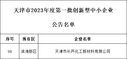 喜報 | 天津長蘆化工新材料有限公司入選2023年度第一批天津市創新型中小企業