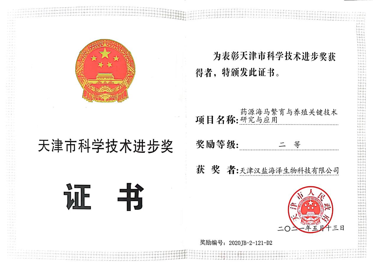 科技賦能產業變革,新技術、新科技的應用是新興產業高質量發展的基礎,漢鹽水產積極與科研機構和高校建立合作關系,與天津農學院打造“產學研聯合體”,養殖基地成為天津水產研究所南美白對蝦科研示范基地和濱海新區國家現代農業產業園水產種苗科技研發中心,漢鹽水產示范園區成為濱海新區國家現代農業產業園重點創建單位。2022年,“藥源海馬繁育與養殖關鍵技術研究與應用”項目獲天津市科學技術進步二等獎。