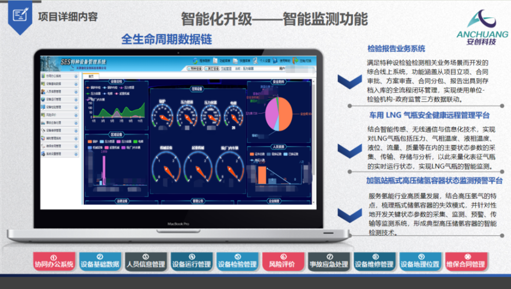“特種設備安全智能管理系統研發及應用”項目通過應用特種設備數據采集、數據傳輸、分析診斷、應急響應、應急處置等監檢測技術將促進我國特種設備在線監檢測、風險評估及運行監管技術進步。同時,成果在天津石油化工行業首先進行轉化,為工藝技術的優化、確定原料質量標準、生產裝置的預知檢修等工作的持續改進提供可靠的技術支持,為石油化工生產裝置實現“安、穩、長、滿、優”運行和企業高質量發展提供了重要技術措施。