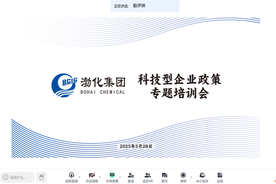 為落實集團公司科技型企業梯次培育戰略部署,發掘培育一批科創屬性強、發展模式新、成長速度快、市場前景好的市級獵豹企業,加速培育一批創新能力強、市場占有率高的專精特新“小巨人”企業,幫助企業準確理解政策要求、掌握申報要點,用足用好科技型企業支持政策。5月28日,渤化集團組織召開科技企業梯次培育專題培訓,特別邀請中國石油和化學工業聯合會專家線上授課,針對天津市“獵豹”企業、專精特新“小巨人”政策及申報實操進行解讀解答,并對企業申報資料進行一對一輔導。渤化集團科技創新部部長殷伊琳,渤化集團所屬二級公司科技創新部門負責同志,擬參評天津市“獵豹”企業負責人、擬參評專精特新“小巨人”企業負責人共55人線上參加。渤化集團科技創新部部長殷伊琳主持培訓會。