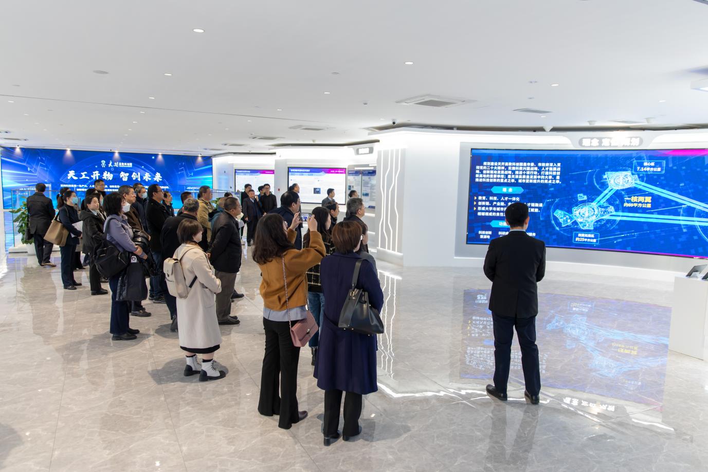 渤化集團各企業首先參觀了天開園綜合服務中心“一站式”政務服務大廳和科技成果展廳,聽取了天開園“一核兩翼”建設布局、園區功能定位及目前建設情況的介紹,通過了解優秀項目入駐、打造服務生態、創建孵化體系、招商引資等各項工作成效,親身感受天開園的創新創業氛圍。