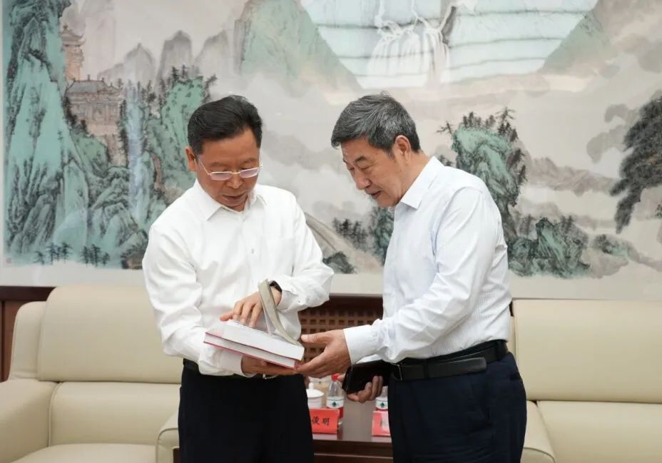 講座結束后,韓布興院士與市科協、市教委、天開集團、渤化集團等領導進行了沙龍座談,就產業發展、后續合作與交流等內容進行了深入交流探討。渤化集團黨委書記、董事長王俊明向韓布興院士贈送《范旭東文選》。