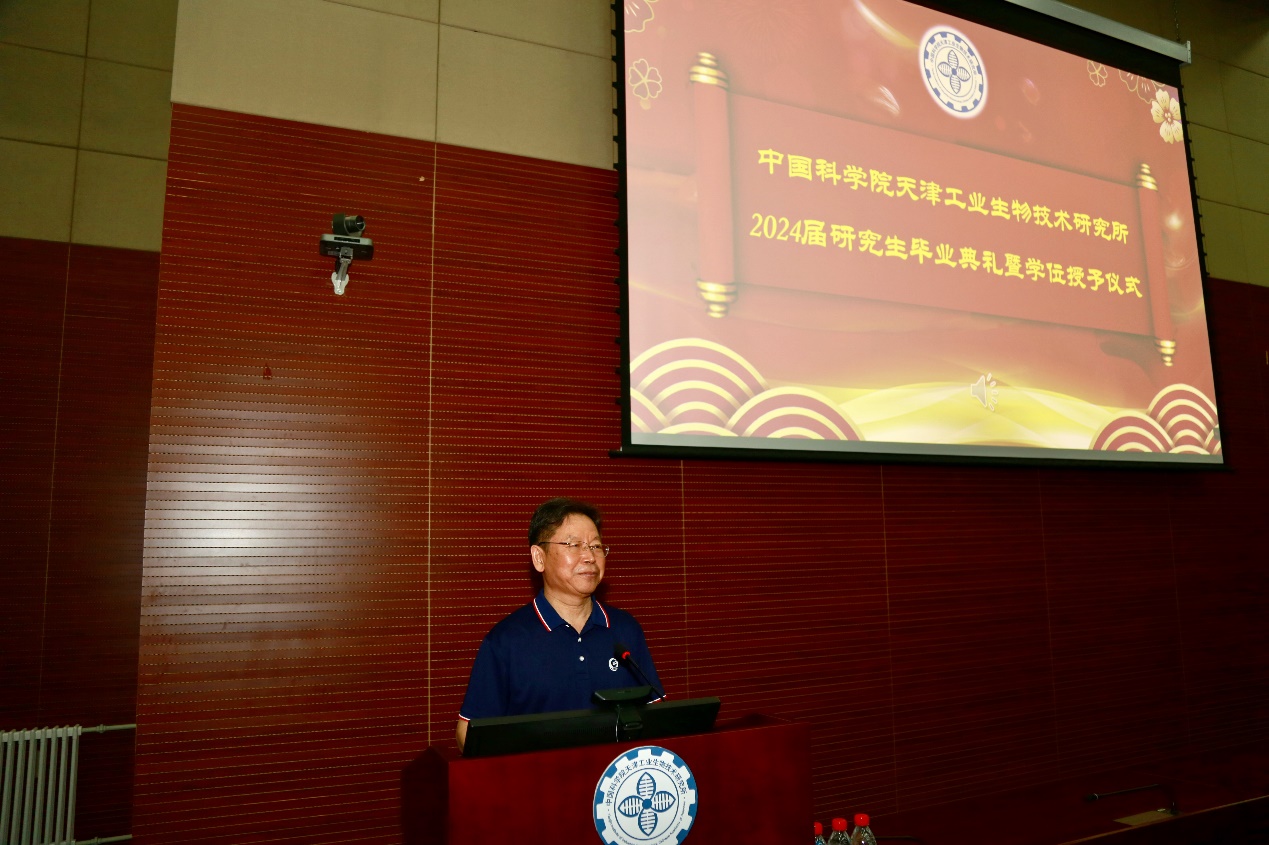 頒獎儀式后,俊明書記發表致辭,首先對完成學業、獲得獎學金的優秀學子表示衷心祝賀!他指出,中科院天津工生所肩負著促進我國工業綠色升級的歷史使命,始終圍繞綠色低碳和經濟社會可持續發展的重大需求,開展“工業蛋白質科學與生物催化工程、合成生物學與微生物制造工程、生物系統與生物工藝工程”三個領域方向的基礎研究和應用基礎研究,為我國的生物與化工事業作出了巨大貢獻。中國科學院天津工生所與渤化集團友誼源遠流長,多年來雙方進行了全方位、多層次、多形式的合作,形成了互相開放、資源共享的戰略合作伙伴關系,渤化集團高度重視科技創新,出臺一系列支持人才創新發展的激勵政策,為廣大畢業生創造了雄鷹翱翔的藍天和駿馬馳騁的草原,當前生物制造產業正處在加快發展的關鍵時期,誠邀有志青年加入渤化集團干事創業,共同為天津市和全國的傳統產業升級和綠色產業發展貢獻力量!