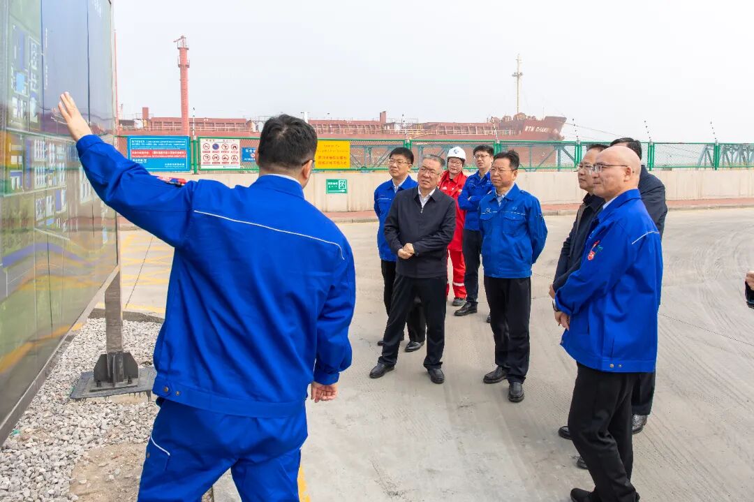 在南港智慧碼頭,調研組詳細聽取碼頭運行情況匯報及“十五五”發展規劃,深入了解港產城融合發展新模式。渤化集團依托南港碼頭資源優勢,結合園區鐵路等多式聯運資源,著力構建“貿易帶產業、產業帶經濟”的港產城融合發展新格局。項目建成后年吞吐總量將突破1000萬噸,成為華北地區規模最大的液體散貨碼頭樞紐,為環渤海地區高水平開放注入強勁動能。