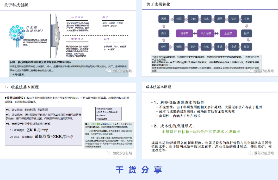 本期培訓以“科技創新與成果轉化—科技成果轉化中的專利布局及專利價值評估”為主題,邀請南開大學經濟學博士、天津商業大學產業經濟研究所所長、天津市技術轉移工作專班成員蒙大斌現場授課。課程圍繞科技創新成果轉化,聚焦專利價值評估和定價,從收益法、實物期權法、成本法和市場法四種常用的評估方法,深入解析專利價值評估的原理和指標體系,輔以豐富案例加深企業科技管理和研發人員對專利價值評估體系的了解,對于企業科技成果轉化和知識產權融資具有重要參考意義。
