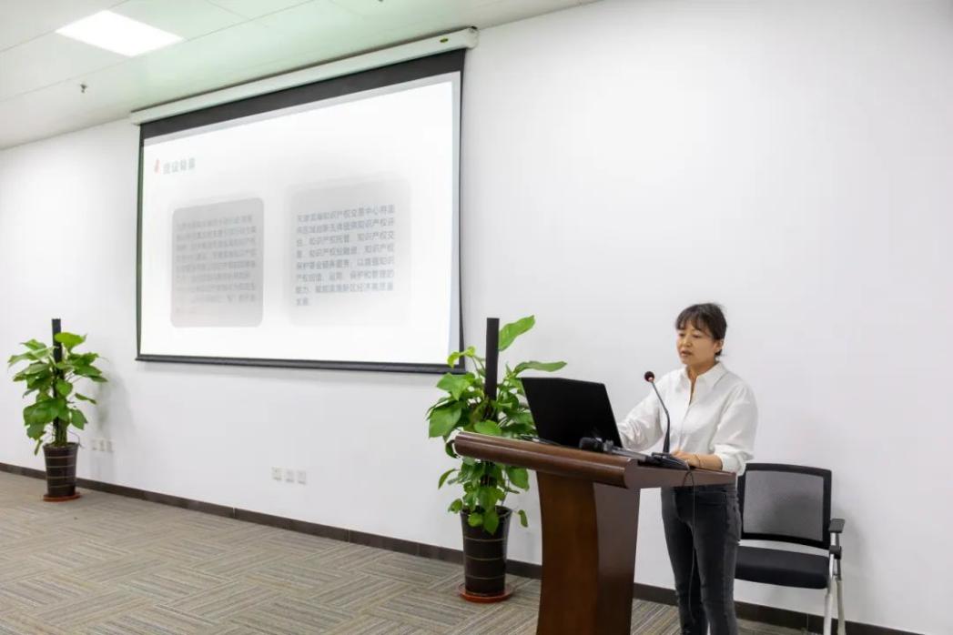 天津產權交易中心任文涵做知識產權交易流程宣講,詳細講解了專利開放許可、平臺業務流程,指導權利人開展專利技術轉化,完善備案管理制度。