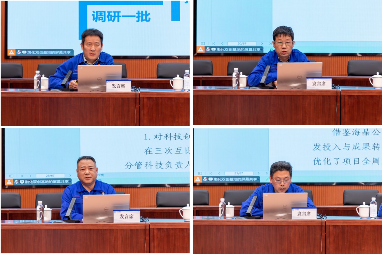 在互比互學經驗分享及提升舉措交流環節,四家單位現場分享互比互學系列活動的心得體會,其中渤化發展、渤化永利重點總結分享了在推動科技創新體系建設、科技創新項目管理等方面的經驗;精細公司、渤?;瘜W坦誠剖析了存在的短板問題,并提出了具有針對性的下一步工作提升舉措;其他相關單位以書面材料進行交流分享。通過全方位、多形式的互比互學交流,各單位取長補短、共同進步,在集團內營造出濃厚的比學趕超創新氛圍,有助于進一步提升集團整體科技創新水平。