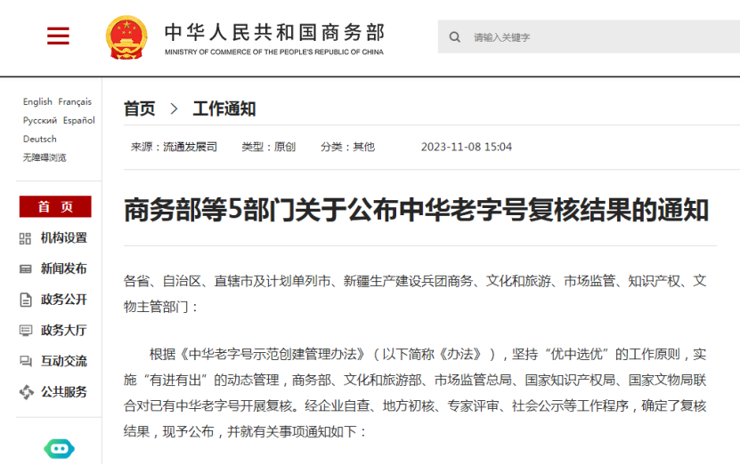 近日,商務部等5部門印發關于公布中華老字號復核結果的通知,對已有中華老字號開展復核,經企業自查、地方初核、專家評審、社會公示等工作程序,確定了復核結果予以公布,全國981家企業順利通過中華老字號復核工作,其中天津市59家。