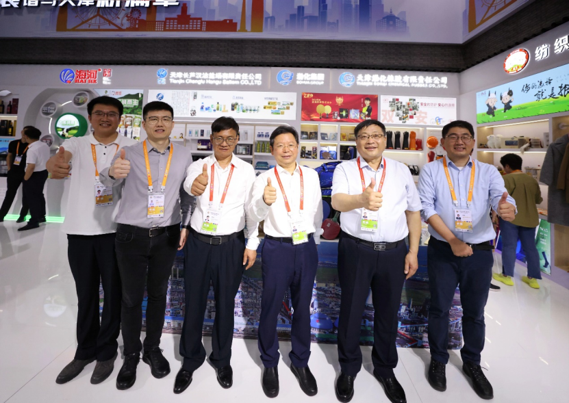 天津市副市長李文海在渤化集團黨委書記、董事長王俊明的陪同下,在渤化集團展臺前駐足了解。相關負責人詳細介紹了品牌發展歷史和產品開發生產情況。文海副市長對渤化集團C端產品以及在品牌建設方面的工作給予了高度評價。