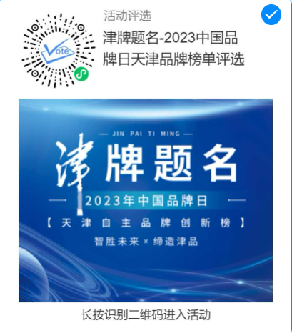 另外,為配合中國品牌日相關活動,我市發起了“津牌提名——2023中國品牌日天津品牌榜單”評選,誠邀各界朋友和廣大干部職工踴躍參與投票評選。